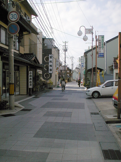 七尾駅から大手町通りを海に向かって少し下ったところにあるのが相生町、旧称中小池町。江戸時代、現在の相生町はナカオケ町と呼ばれていました。江戸時代の初めには寺院はひとつもありませんでしたがその後の火事などで御坊町(現在の郡町の一部)などから寺院が移転してきて、現在では浄泉寺、常福寺、西勝寺、西休寺と、4か寺もあるので、寺町のような雰囲気があります。また、櫻井醤油店、小山醤油店、府和造花店、小林仏壇店といった趣きある老舗が点在しています。