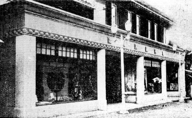 昭和9年ころの春木屋呉服店です。檜物町の中ノ棚通りにあった当時七尾一の店と呼ばれた呉服屋さんです。もともと土蔵造りの建物ですが、昭和5年に一階部分を鉄筋洋館に改装しました。改装以前の建物と見比べてください。