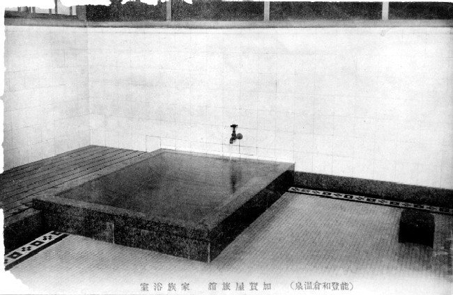 戦前から加賀屋にはこうした家族風呂がありました。館内の平面図では貸切風呂と記され、一階の奥のほうに位置しています。