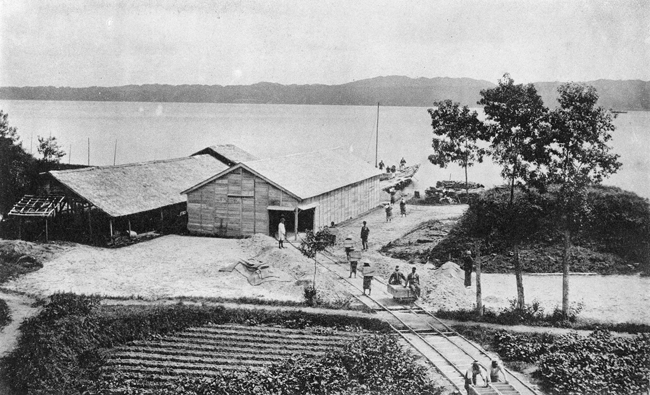 矢田新に化学肥料工場ができたのは能登島で燐鉱石が発見されたことがきっかけでした。写真の工場は、その関係工場だと思われます。