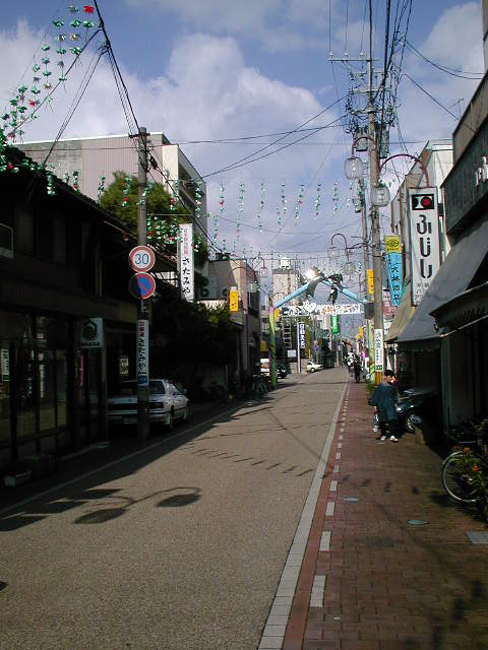 印鑰神社の方から駅の方へ向かってまっすぐのびる通りのどんたく本店から国道に出るまでのあたりが大手町です。江戸時代から大手町という名前で知られ、かつては七尾の中心的商店街として買い物客でにぎわった大手町ですが、不景気と郊外大型店の進出が重なって空店舗が目立つようになってきました。しかし、七尾商業高校の学園祭の舞台になったり、空店舗を利用したギャラリーなど様々なアイディアが活用されている通りでもあります。現在は「リボンストリート」という通称で愛着を持って呼ばれています。江戸時代以来続く栂本表具店などの老舗もがんばっています。