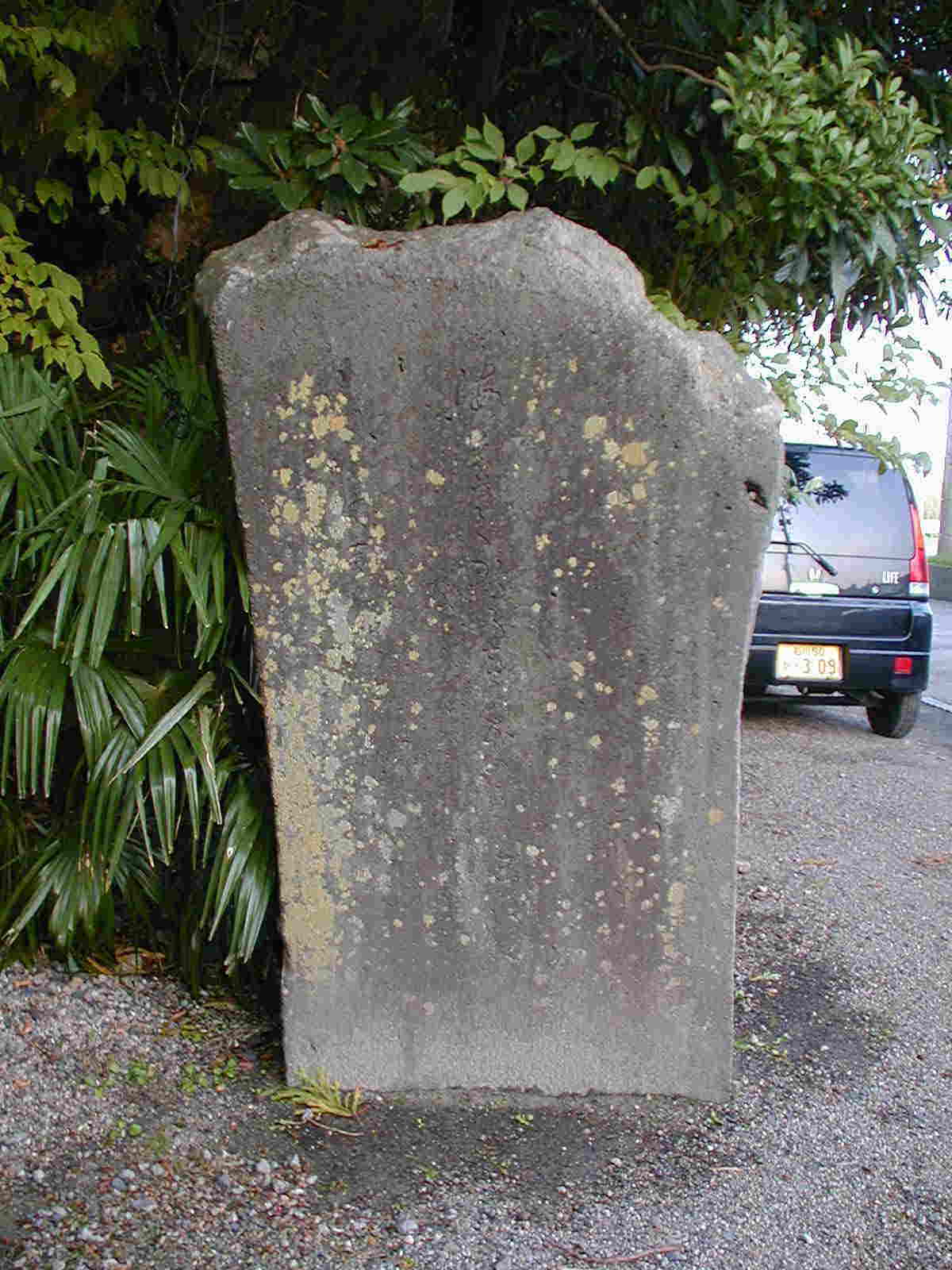 小島町妙観院前の句碑。 次のように正面に三句刻まれている。岩城楽斎とその妻明々尼の句にはさまれた真ん中の句は芭蕉の句である。 花咲きて待あふせたり二日月 楽 斎 海暮れて鴨の声ほのかに白し 梅室筆 貸馬の繋てあるや秋の風 明々尼 左側面には すゝしさや磯はささ波婦夫いわ とある。 文久3年(1863年)明々尼の死の翌年に名勝妙観院の門前に竹塢(塩屋大番頭松屋仁左衛門)が建て、金沢の俳人桜井梅室が揮毫した。 楽斎・西陀・木聖へ戻る 塩屋関係人物集へ ホームへ |