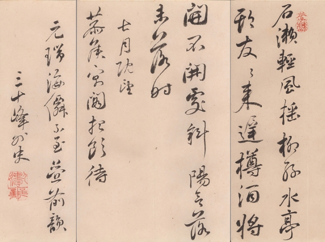 頼山陽が西陀へ贈った漢詩。頼山陽・小石元瑞・小田海僊らで酒宴を催した際の漢詩のようである。 戻る 画像の無断利用を固くお断りいたします。著作権の保護期間が満了していても利用に関しては所蔵者の許可が必要となります。
