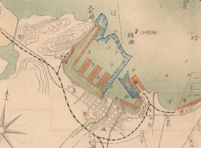昭和3年(1928年)七尾港図 (部分) (昭和3年発行『七尾港修築要覧』より)