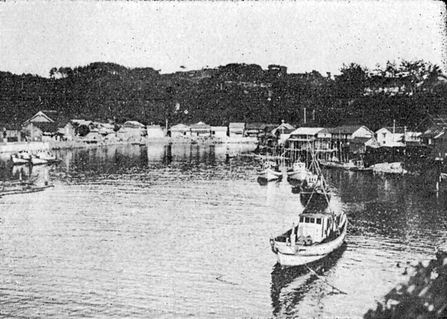 昭和10年(1935年)ころの福浦の港。左側にお寺の屋根が見えます。