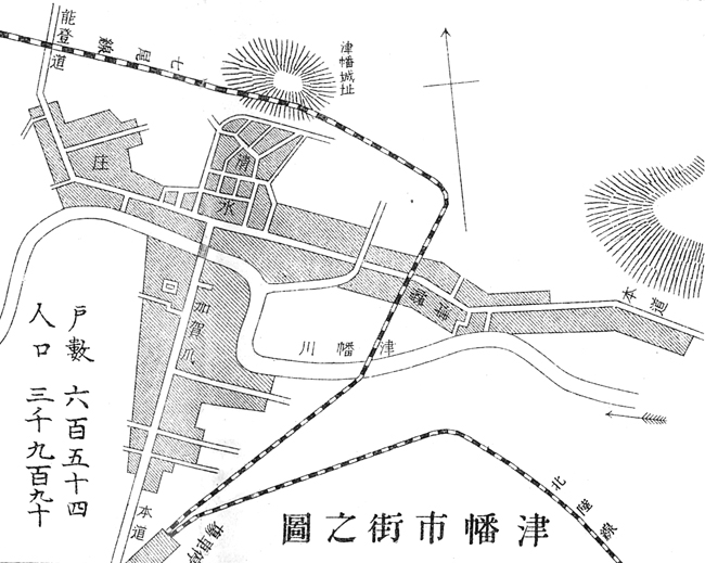 大正9年(1920年)津幡市街之図(河北郡) (大正9年発行『石川県管内地図』 宇都宮源平著より)