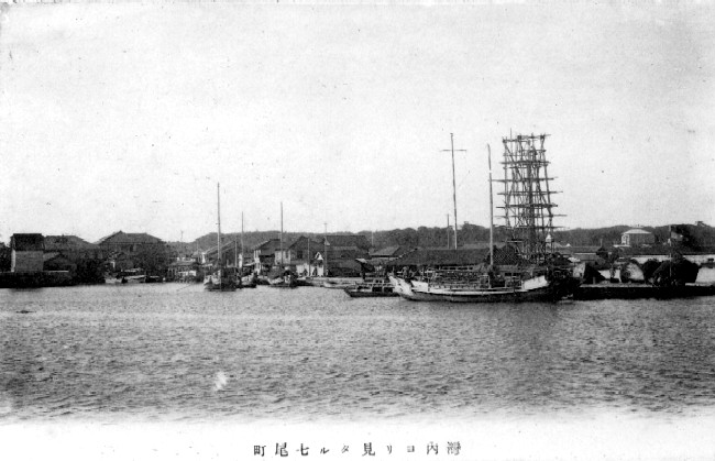 湾内より見たる七尾町